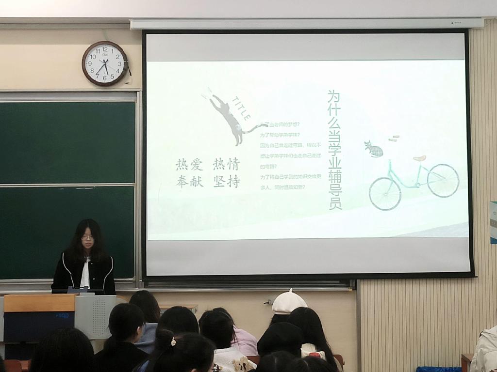 培训会开始,学习发展中心的郝珍珍同学为大家解读了《Beat365正版唯一官网必一本科生学业辅导员管理办法》,并对细则进行了说明。经验分享环节,李陈媛和张圆缘两位同学对新一届学业辅导员与大家交流了自己做学业辅导员的体验和收获。其中,李陈媛同学指出“热爱,热情,真诚,奉献”是学业辅导员的应当具备的品格和态度,张圆缘同学则侧重分享了她做学业辅导员时的辅导方式和技巧。谢铅玉老师从学业辅导员的多重身份出发,强调了学业辅导员对于学院学风建设的重要性,并指出学业辅导员要有责任心和服务奉献精神,不仅要给同学们提供学业辅导,更要发挥榜样引领作用,践行“知行合一,以人育人”的院训精神。