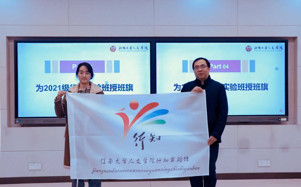 接下来,2021级行知班班主任王靖宣读了2021级行知实验班学生名单,杨晖为新一届行知班授旗。教技2101班刘雨萱同学作为行知班代表进行发言,她结合自己入学以来在学院的学习经历和体验,分享了自己对“行”与“知”的理解,并表示在学好知识的同时要珍惜每一次“行”的机会,“求真学问,练真本领”。