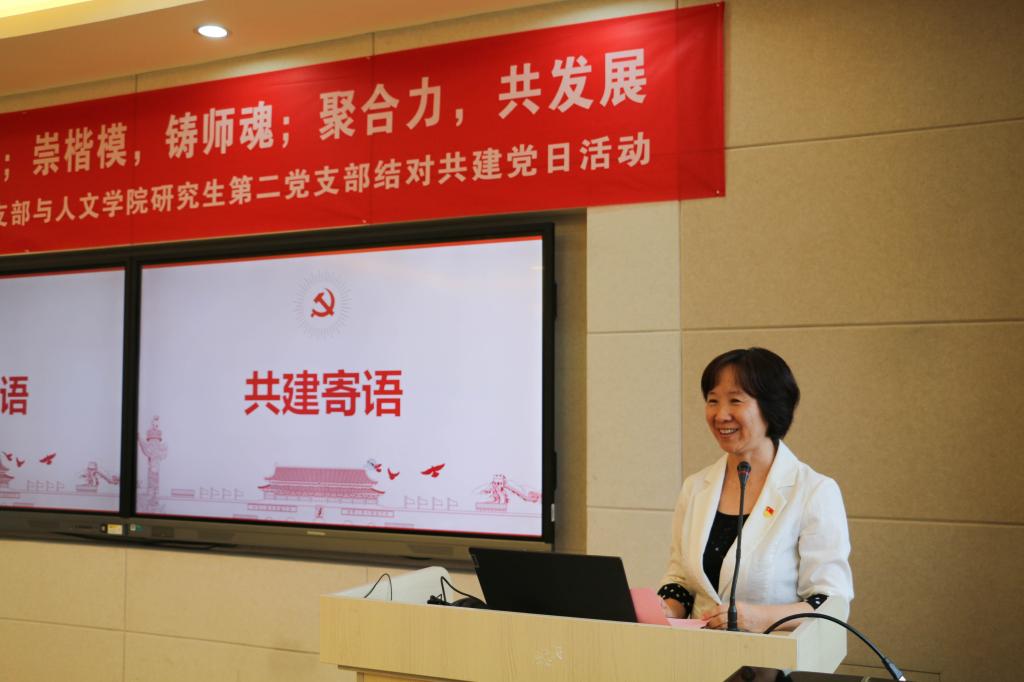 活动伊始,姚剑英对本次共建活动殷切寄语,她对社科处老师的到来表示热烈欢迎,对Beat365正版唯一官网必一研究生第二党支部党员提出了更高要求。她希望双方党支部通过多样化、实效性的共建活动,进一步增强党支部的组织力和凝聚力,同心同行、聚智聚力、共建共享、合作共赢。