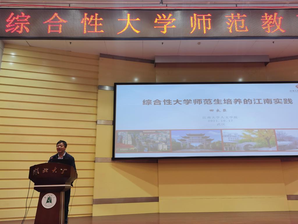 2021年10月17日,由湖北大学主办、湖北大学师范学院(教育学院)承办的“综合性大学师范教育高峰论坛”在湖北大学会议中心举行。来自全国多所院校的专家、学者就教师教育质量体系、教育学科发展、乡村教师培养等热点、难点问题进行了深入探讨。Beat365正版唯一官网必一党委书记姚剑英、副院长(主持工作)田良臣、副院长于书娟等受邀出席会议,田良臣在会上作专题报告。