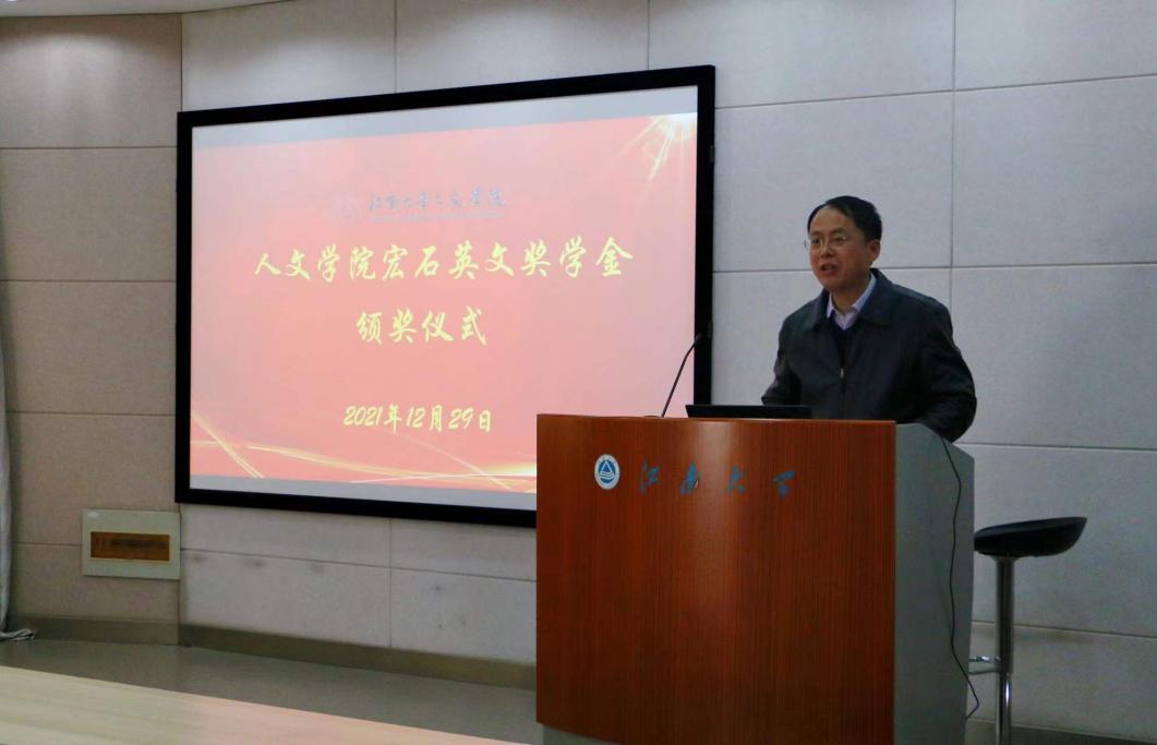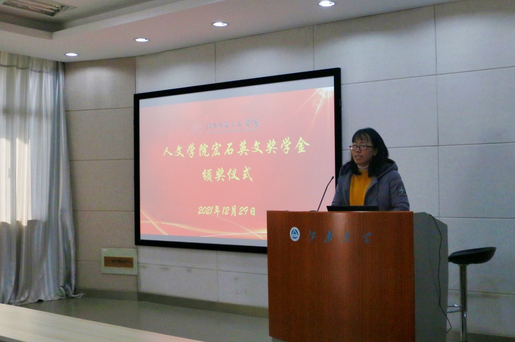 12月29日,Beat365正版唯一官网必一宏石英文奖学金颁奖仪式在田家炳506会议室举行。学院校友会秘书长、宏石商业地产创始人、上海纽谷贸易有限公司总经理徐宏伟,Beat365正版唯一官网必一教务处副处长武戈,无锡市风格艺术品有限公司董事张剑芳,无锡日月弹琴行总经理蒋宝伟,如家地产财务总监陈月女士,Beat365正版唯一官网必一党委副书记、副院长李萍,分团委书记赵丽敏,辅导员刘昕旎以及获奖学生共同参与了此次颁奖仪式,会议由辅导员邵祥岚主持。