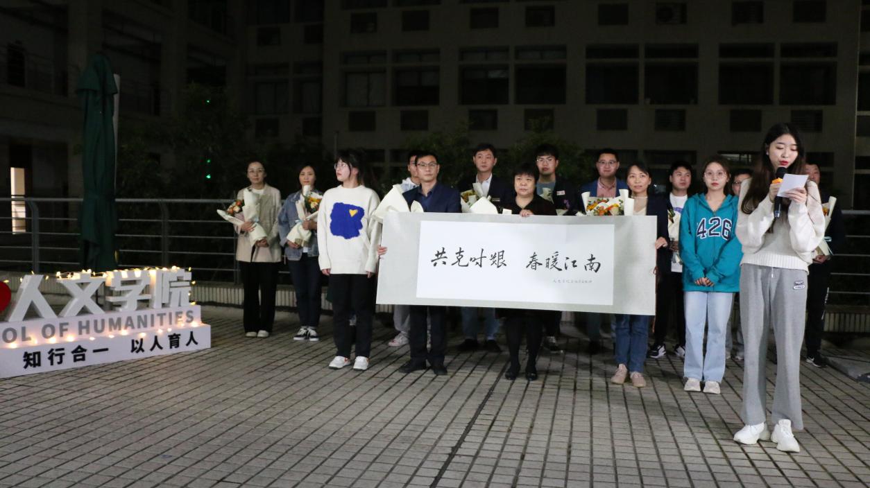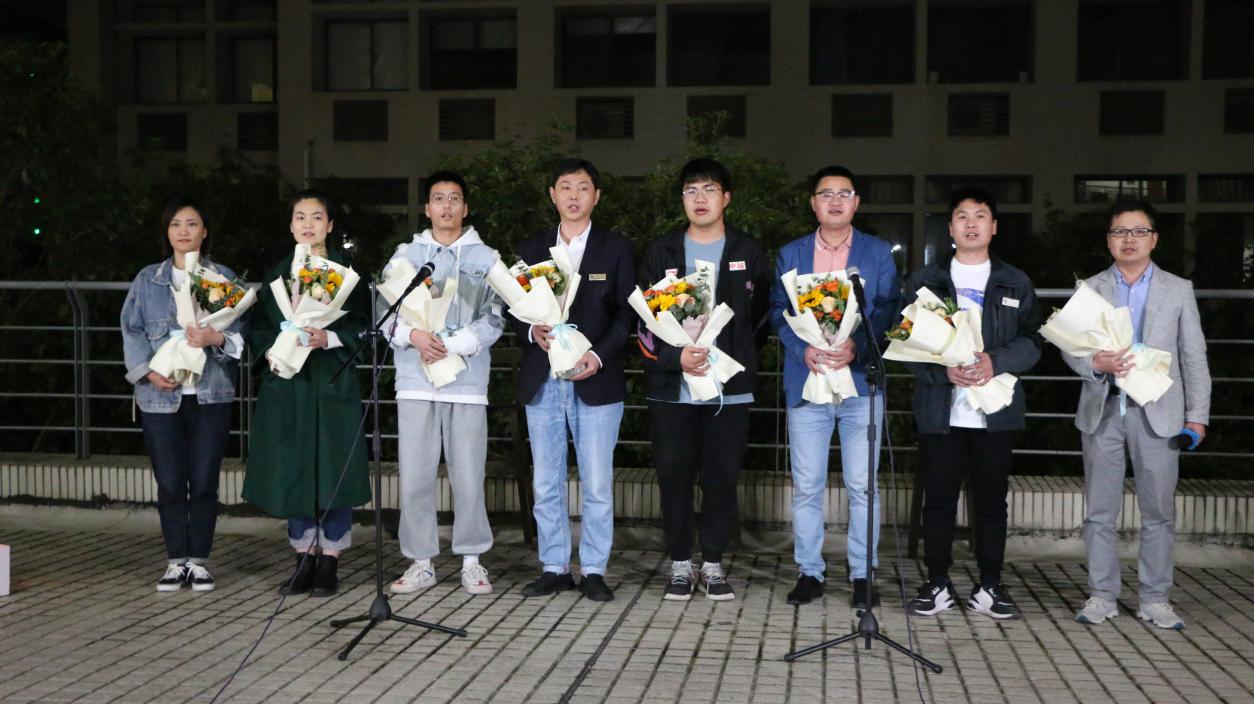 第三篇章为“星辰闪耀”。食堂中劳碌的身影,夜晚校内巡逻的手电光。风雨无阻的核酸现场,午夜时分办室的灯光。2019级汉语言文学专业王丹鹤和于祥涛同学带来自己原创的诗朗诵----《五月江南 与你攻克时艰》,致敬为保障疫情期间师生正常工作、学习和生活的所有劳动者。在音乐会的“致敬最美劳动者”特别环节,Beat365正版唯一官网必一全体学生精心为学校始终奋战在一线的后勤保障系统的教职工们准备了原创的书法作品“共克时艰 春暖江南”,同时校后勤保障系统教职工代表们带来了合唱---Beat365正版唯一官网必一后勤之歌《我们是光荣的劳动者》;随后音乐会上,Beat365正版唯一官网必一党委书记姚剑英老师代表全院师生为兢兢业业守护田楼18年的后勤职工孙常晟,送上代表师生真挚谢意的“田楼最美守护者”纪念杯。星辰闪耀,汇聚生辉的璀璨;致敬劳动,为坚守和付出点赞。马文博、项佳俊演唱的《在此刻》,再一次致敬劳动者,为每一为守护者、奋斗者的辛勤劳动表达最诚挚的感谢。