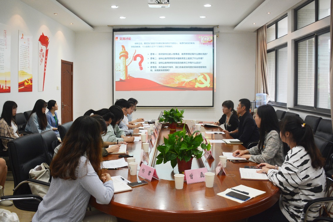 接下来,支部成员在前期学习基础上,围绕徐特立个人事迹、教育思想、历史意义、当代价值与启示这四个方面结合自身经历和个人感悟展开了讨论。与会同志表示,徐特立的教育思想在当代依然具有现实现实意义和价值,例如他的“德智体全体发展”理论、“创造教育”的理论以及“在全面发展的同时注重学生个性化发展”的思想在现在依然具有指导意义。作为未来的教育工作者,我们应该坚守徐特立老前辈立德树人的教育初心,在教育领域实现自身价值。