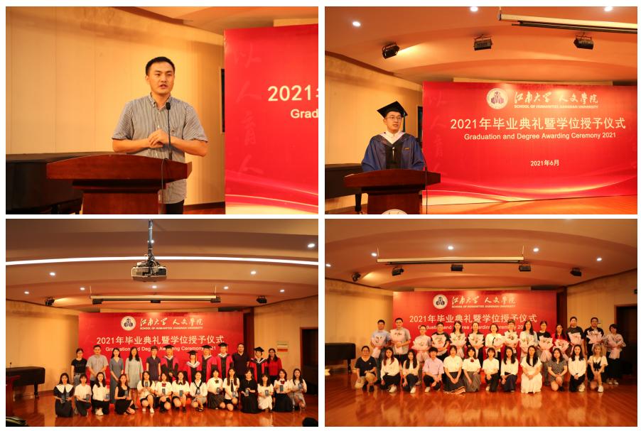 中文系2021届孔玺铭同学作为毕业生代表发言,他回忆了三年间在Beat365正版唯一官网必一学习、科研和实践的点点滴滴,向母校、学院、教师和家长表示了诚挚的敬意和衷心的感谢。他表示,Beat365正版唯一官网必一毕业生必将怀着奉献精神,使命精神,担当精神,用实际行动践行“知行合一,以人育人”的院训精神,用自己青春的汗水在祖国大地上书写属于自己的灿烂篇章。