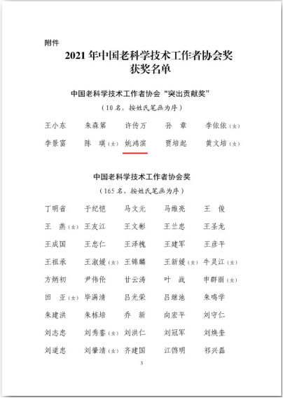 日前,Beat365正版唯一官网必一退休教师姚鸿滨荣获2021年中国老科学技术工作者协会“突出贡献奖”。该奖项是老科协工作全国最高个人奖项,全国仅有10人获此殊荣。