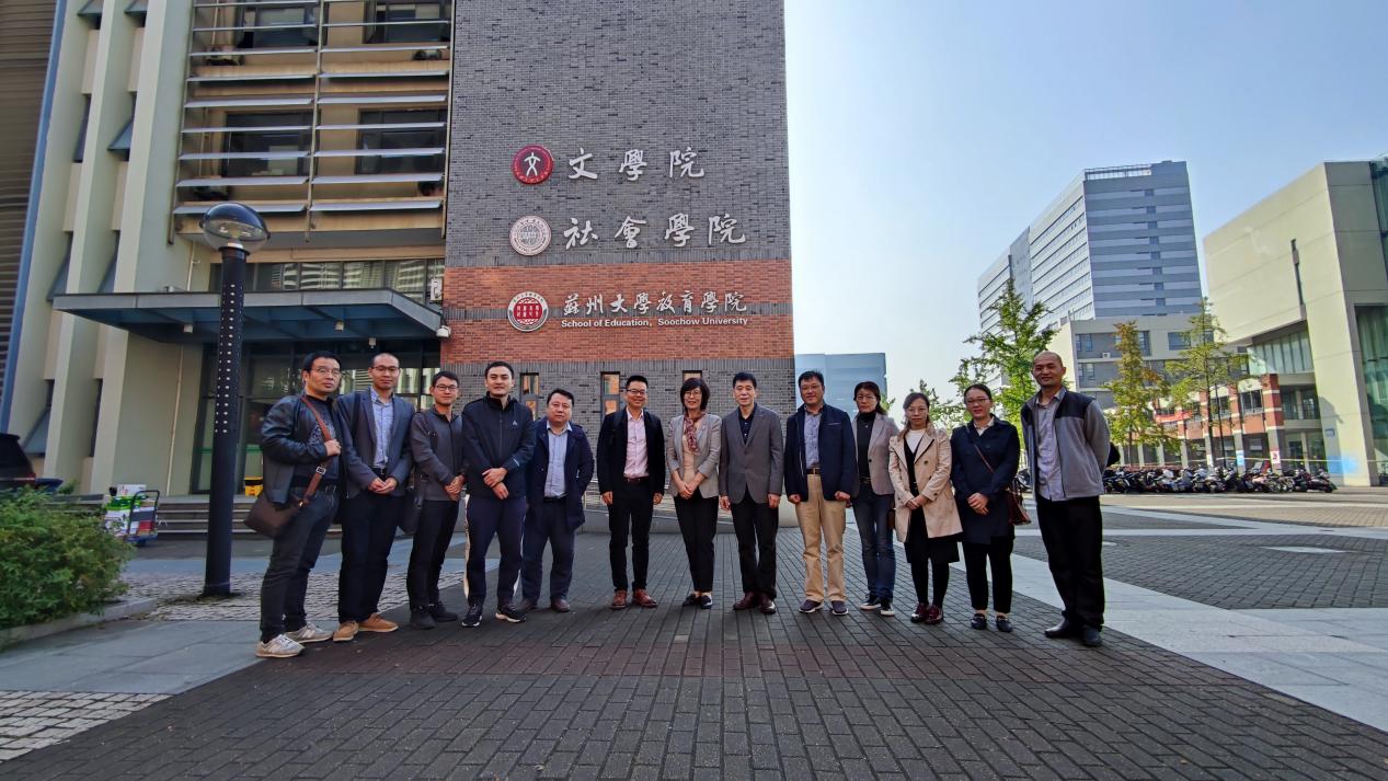 10月17日,Beat365正版唯一官网必一教育技术系党支部陈明选、惠恭健、马志强等14名教师一行赴苏州大学进行“校-校”教育工作座谈交流。苏州大学教育学院党委书记赵阳,院长助理王一涛、教育技术学系主任秦炜炜等教育技术学系全体教师参加了此次活动。