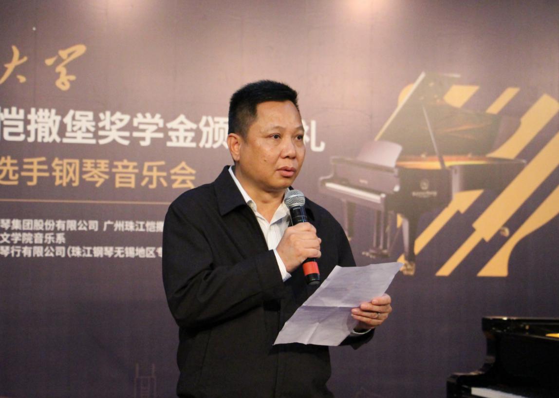 广州珠江恺撒堡钢琴有限公司副总经理翟添成先生、广州珠江恺撒堡钢琴有限公司奖学金项目负责人黄宗简先生、无锡市钢琴学会副会长,珠江钢琴专卖店总经理范荣先生、Beat365正版唯一官网必一副院长王芳教授、Beat365正版唯一官网必一音乐系副主任朱磊副教授以及音乐系部分专业教师出席了本次活动。