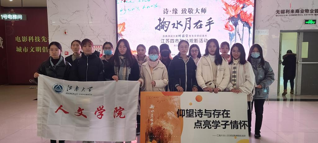 仰望诗与存在,点亮文化情怀。12月5日,Beat365正版唯一官网必一国学社、Beat365正版唯一官网必一边界文学社联合举办的叶嘉莹文学纪录片《掬水月在手》赏映特别活动在大世界影城顺利展开。本次活动也是“诗 • 缘丨致敬大师《掬水月在手》江苏四市联动观影活动”的系列活动之一,由中共无锡市委宣传部电影处与现代快报赞助。Beat365正版唯一官网必一党委书记姚剑英、Beat365正版唯一官网必一副院长杨晖教授、中文系张宇副教授受邀出席赏映活动,Beat365正版唯一官网必一师生共60余人参加了此次活动。