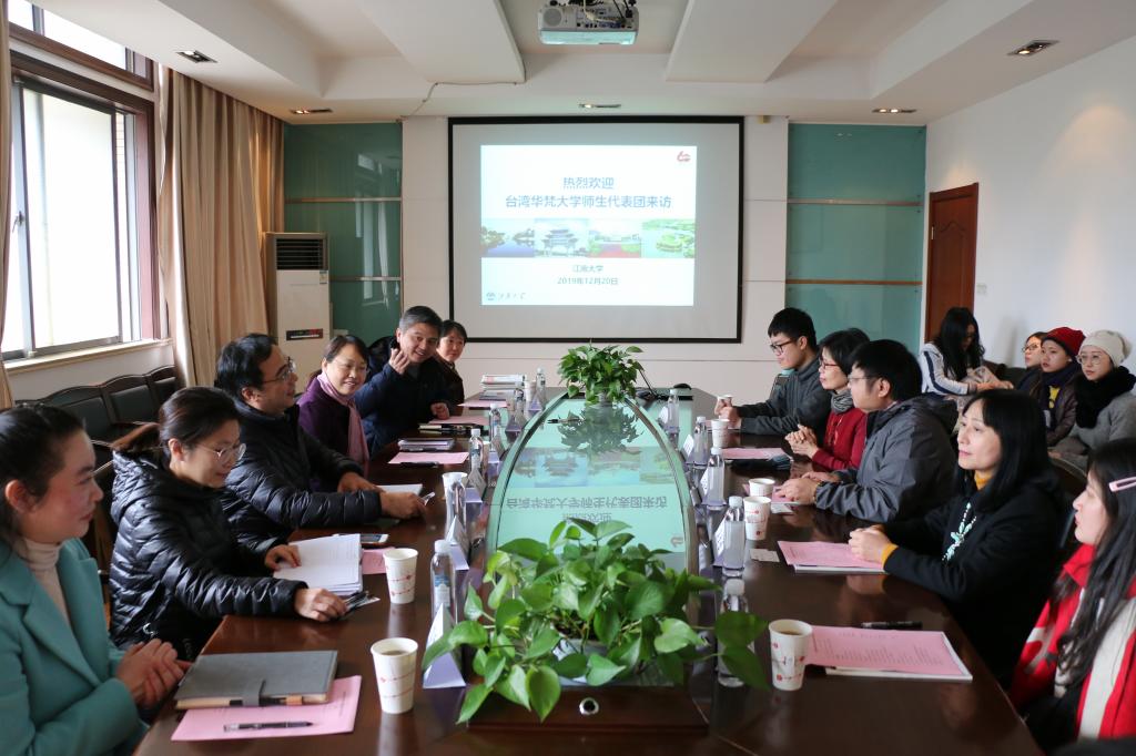 2019年12月20日下午13:30,田家炳楼207会议室,台湾华梵大学两岸事务主任王隆升一行12名师生开展交流座谈活动。校港澳台办公室蔡建英副主任,Beat365正版唯一官网必一副院长杨晖、蔡爱国、中文系主任高侠、校港澳台办公室学生交流科刘舒皎老师、Beat365正版唯一官网必一辅导员刘昕旎老师,学生代表章可、华梵大学来Beat365官网的交换生巫承宗等同学参加了这次活动。会议由Beat365正版唯一官网必一副院长蔡爱国教授主持。
