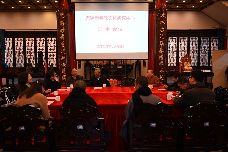 1月4日下午,无锡佛教文化研究中心理事会议在惠山寺藏经楼召开。会议由理事长玉平大和尚主持,无锡市民族宗教事务局施正洲局长应邀出席,Beat365官网沈贵鹏、田良臣、杨晖、赵建军等理事及相关老师参加了会议。
