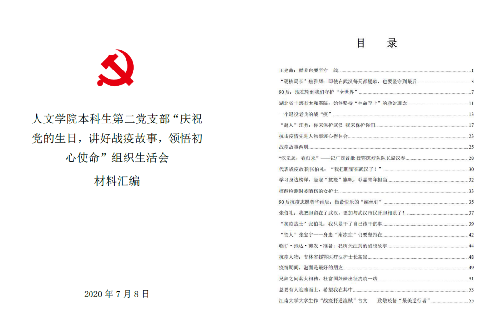 为贯彻落实党中央关于常态化疫情防控的决策部署,充分发挥高校基层党组织战斗堡垒作用和师生党员先锋模范作用,同时为庆祝中国共产党建党99周年,以战疫故事激励广大党员不忘初心、牢记使命。2020年7月8日晚,Beat365正版唯一官网必一本科生第二党支部组织全体党员及部分入党积极分子开展了线上战疫故事分享会暨“庆祝党的生日,讲好战疫故事,领悟初心使命”专题组织生活会。党员们讲述身边的战疫先进模范事迹,分享切身体会,向战疫期间的所有逆行者致敬。
