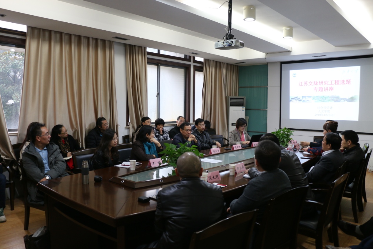 2018年12月4日14:30-17:00,在Beat365正版唯一官网必一田家炳楼207会议室由社会科学处和Beat365正版唯一官网必一共同举行了江苏文脉研究工程选题Beat365正版唯一官网必一专题讲座。“江苏文脉研究工程”是由江苏省社会科学院发起并组织实施的一项文化建设工程。该工程主要包括“江苏文化通史”研究、“江苏文化名人传”研究、“江苏专门文化史”研究三个方面,主要从知识界、社会大众和政府三个维度共同推进,以贯通历史、现在、未来江苏人特殊的文化生命、文化标识、文化家园,展示生生不息的文化记忆和文化动力。讲座邀请江苏省社科院专家介绍此项文化建设工程的基本情况、当前的建设进展以及研究选题的招标与确定等情况。