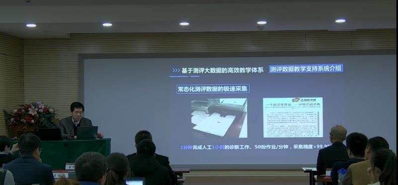 报告针对基础教育课堂教学绩效不高,学生耗费大量精力重复训练的问题,陈明选教授提出了基于测评大数据的高效教学理论框架和实践方案,构建了:精准诊断学习问题、及时进行学习反馈,个性化推送学习资源,系统优化教学过程的教学模型。在实践方面,通过与企业合作利用网络与人工智能系统采集学生在常态性练习作业和考试测评等活动中产生的过程性数据和结果性数据,并对其进行分析后,基于网络、手机移动端及时给学生推送学习反馈内容,错题本和个性化作业;为教师提供智能阅卷、常态化学业数据采集、成绩分析报告告、学业诊断报告,帮助其实现个性化、精益化教学;为管理者提供过程监控帮助;为家长及时了解学生的学习情况提供支持。