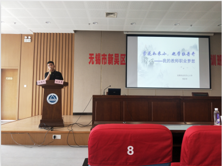 在培训汇报环节,参训学员分为8个小组,以“我的教师职业梦想”为主题分别进行了汇报。邀请了沈贵鹏教授、田良臣教授、惠恭健副教授以及新吴区教师发展中心的领导作为嘉宾现场为学员进行点评。学员们以饱满的工作热情、浓厚深切的爱心、青春活力的表现充分利用多种多媒体手段向在场的专家和老师们展现了新一代教师们的风采,同时也诠释了他们心中的教师梦想。点评专家们从学员展示目标的确定、流程的设计、形式的选择、学生习惯的培养、教学语言的锤炼、生本理念的融入等多个角度充分肯定了新教师汇报的优点,同时也指出其中不足,并对新教师今后的教师发展之路给予了中肯的建议。