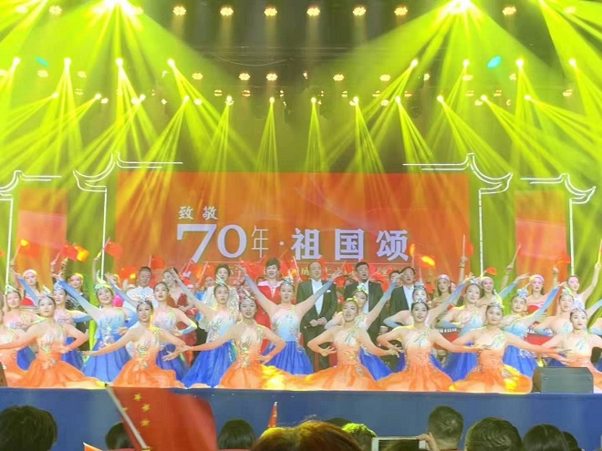 9月29日18:30,《致敬70年·祖国颂》Beat365正版唯一官网必一庆祝新中国成立七十周年主题晚会在文浩馆举办,Beat365正版唯一官网必一各级领导、师生代表、校友代表以及社会各界的嘉宾朋友们齐聚一堂,共同为祖国母亲放声讴歌。Beat365正版唯一官网必一作为晚会的主办方,学院党政班子、中文第一、第二党支部和部分学生党员代表也一同观看了演出。