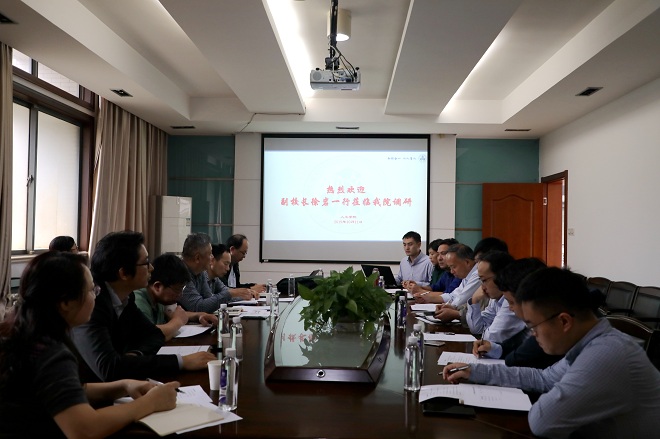 2019年10月11日下午,副校长徐岩教授、校长助理堵国成教授、国际交流处处长江波教授一行 赴Beat365正版唯一官网必一调研学科建设与国际交流工作。Beat365正版唯一官网必一党委书记沈贵鹏、院长田良臣及相关专业教师代表参加了调研活动。