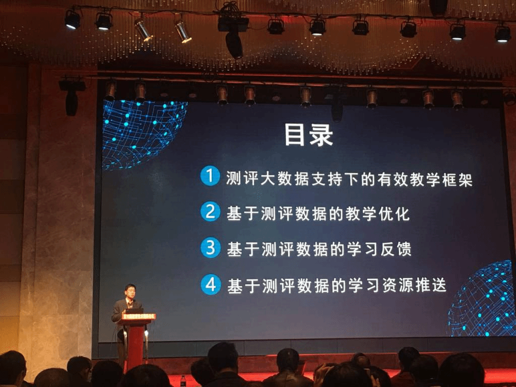 陈明选教授做了题为《测评大数据支持下的有效教学》大会报告。报告从测评大数据支持下的有效教学框架、基于测评数据的教学优化、基于测评数据的学习反馈、基于测评数据的学习资源推送等四个方面对其最新研究成果进行了汇报交流。报告主要是基于学习分析视角,从“教学设计—教学流程—教学反馈”这一主线对测评大数据对有效教学过程产生的变革性作用进行了系统而有深度的探究、挖掘和案例剖析。报告内容是陈明选研究团队与极客大数据以及无锡省梅村高级中心相互合作的最新学术成果,报告受到了与会者的高度肯定。