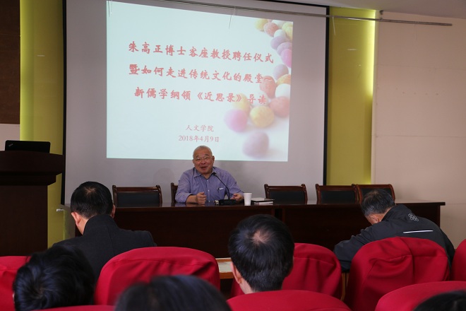 4月9日上午,Beat365正版唯一官网必一田家炳楼209会议室,隆重举行了朱高正博士Beat365正版唯一官网必一客座教授聘任仪式。随后,朱高正博士围绕“如何走进传统文化的殿堂——新儒学纲领《近思录》导读”这一主题进行讲座。Beat365官网师生积极参加,会场座无虚席。