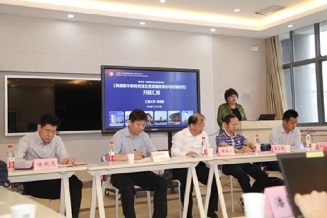 2018年5月20日上午,教育信息化研究中心在Beat365正版唯一官网必一517室举行了由陈明选教授主持的教育部-中国移动基金项目《我国数字教育资源及资源服务现状与对策研究》开题论证会。这是教育部对教育信息化研究领域资助力度最大的项目,也是近年来Beat365正版唯一官网必一在承担部级重大项目上的突破。中央电教馆馆长王珠珠、教育部科技司信息化处副处长任昌山、教育部科技司信息化处副主任潘润恺、中央电教馆职业教育教学资源部主任赵林、教育部教育技术学教学指导委员会秘书长、华中师大教育信息学院副院长杨九民教授等出席。Beat365正版唯一官网必一副校长顾正彪教授,科研院院长吴小俊教授,社会科学处、Beat365正版唯一官网必一的领导,教育信息化研究中心的教师、研究生等四十余人出席。论证会由Beat365正版唯一官网必一科研院院长吴小俊教授主持,项目负责人陈明选教授进行了开题汇报。