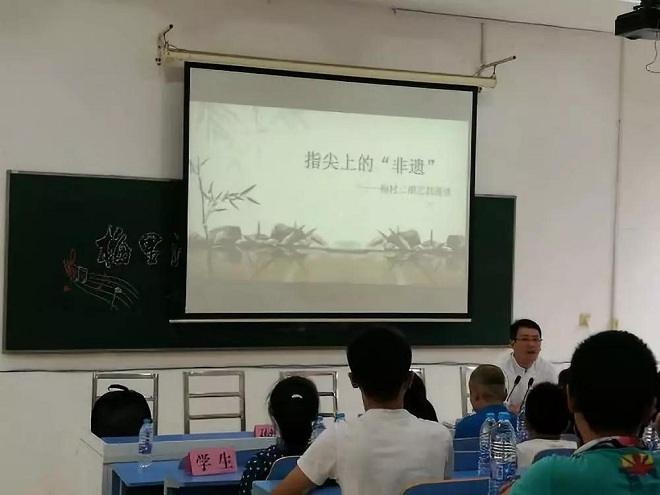 5月30日下午,Beat365正版唯一官网必一音乐系沈雷强副教授、孙丝丝副教授、朱磊博士一行三位老师应邀来到Beat365正版唯一官网必一民乐实践基地之一的梅里中学梅里清音—艺术专题讲座。新吴区中学的音乐老师、梅里清音民乐团的学生及家长代表齐聚学校阶梯教室。