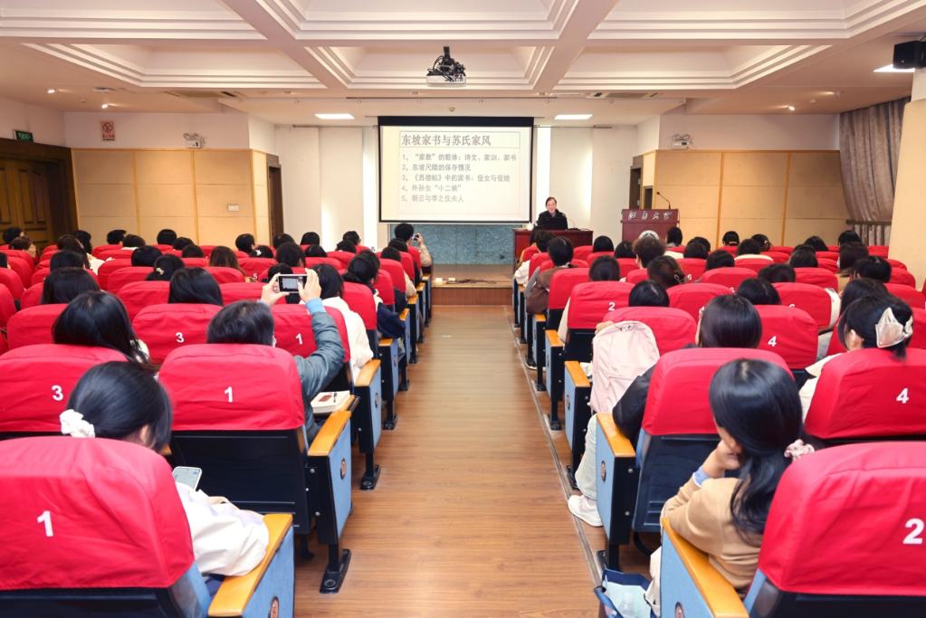 2025年11月21日下午,复旦大学朱刚教授的讲座《东坡家书与苏氏家风》在Beat365正版唯一官网必一文浩馆205会议室成功举行。讲座开始前由黄晓丹教授向朱刚教授赠予“江南大讲堂”讲座嘉宾荣誉牌匾。